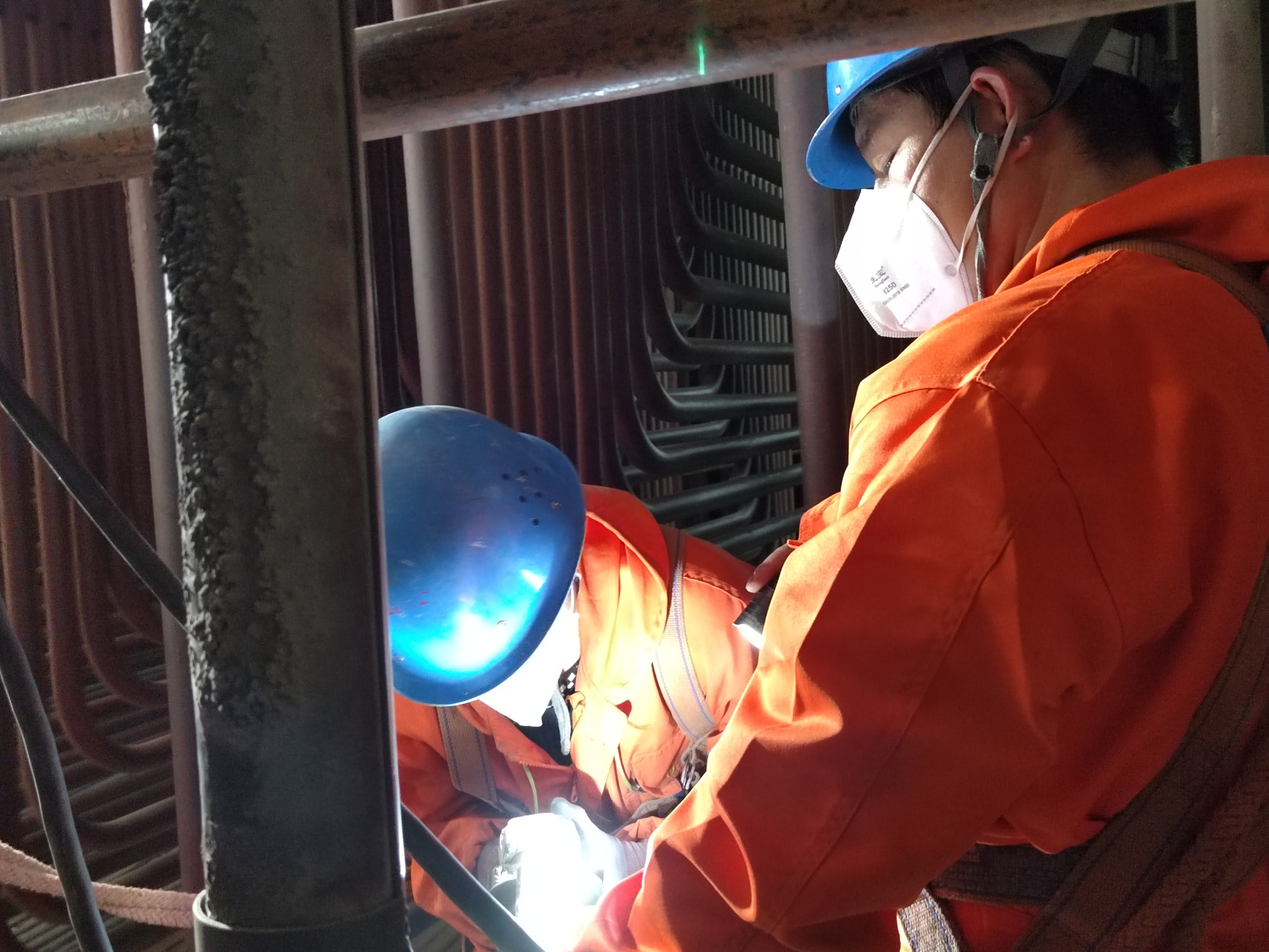 檢修期間,作業(yè)組人員嚴(yán)格遵守安全作業(yè)規(guī)程,狠抓質(zhì)量管理標(biāo)準(zhǔn)化、規(guī)范化,確保檢修工藝質(zhì)量,嚴(yán)格按照規(guī)范和方案要求組織施工。嚴(yán)格查驗(yàn)人員資質(zhì)準(zhǔn)入,建立質(zhì)量控制點(diǎn),按照施工技術(shù)標(biāo)準(zhǔn)執(zhí)行三級(jí)驗(yàn)收,對(duì)焊材使用、各類(lèi)焊縫、管道材質(zhì)等細(xì)致檢查、嚴(yán)格把關(guān),始終保持“不完工、不放松”的精神狀態(tài),保障施工質(zhì)量全過(guò)程受控。此次檢修共計(jì)更換高溫過(guò)熱器、水冷壁管道68根130余米,177道焊口射線探傷一次合格。