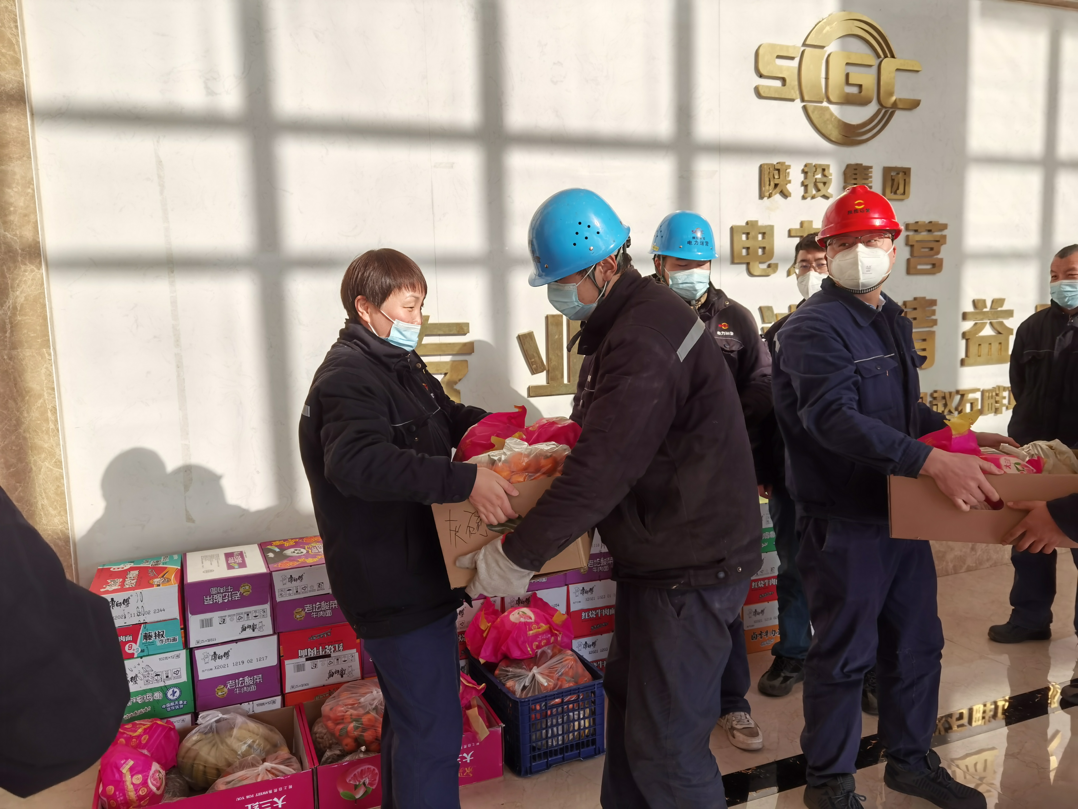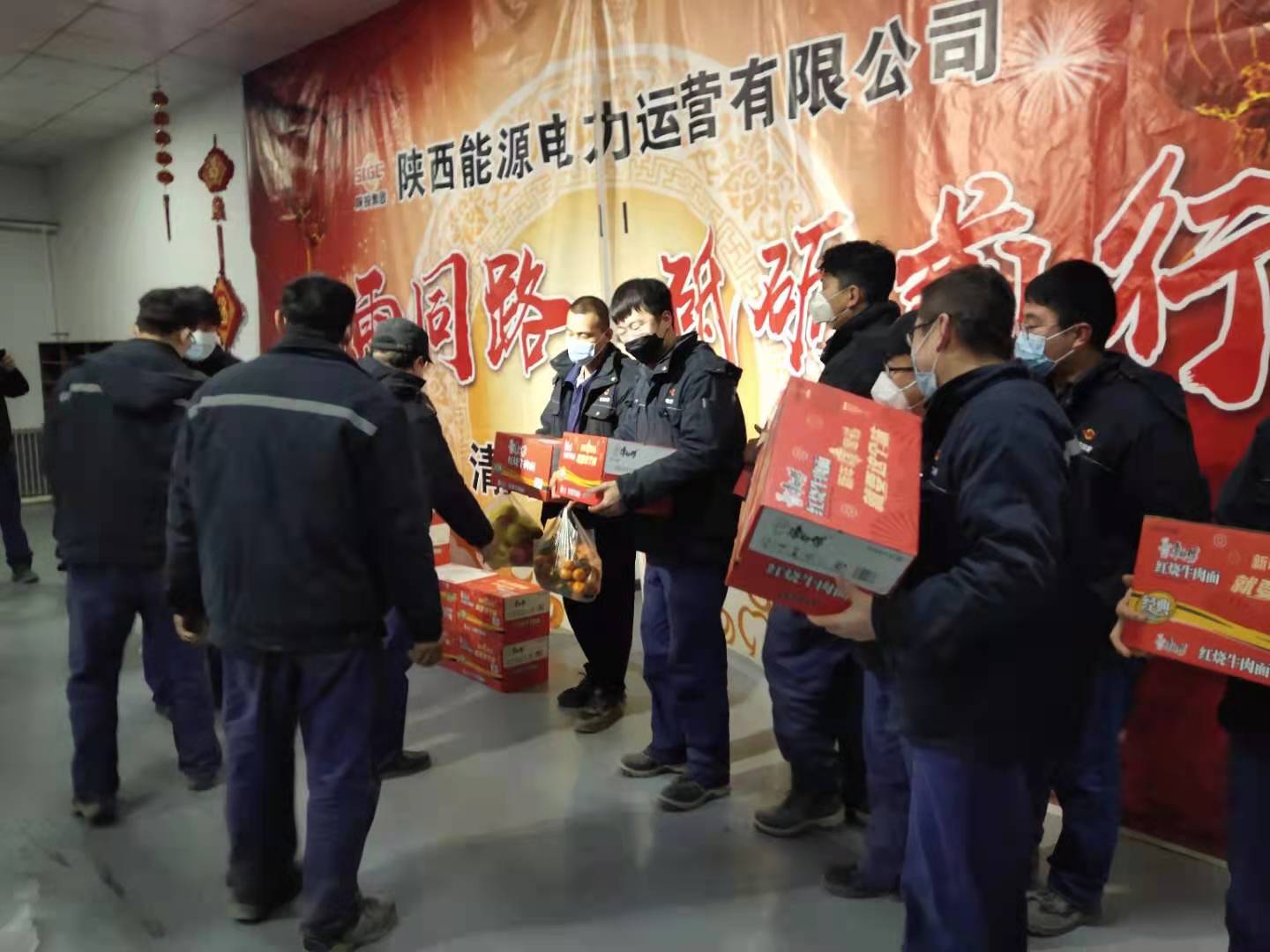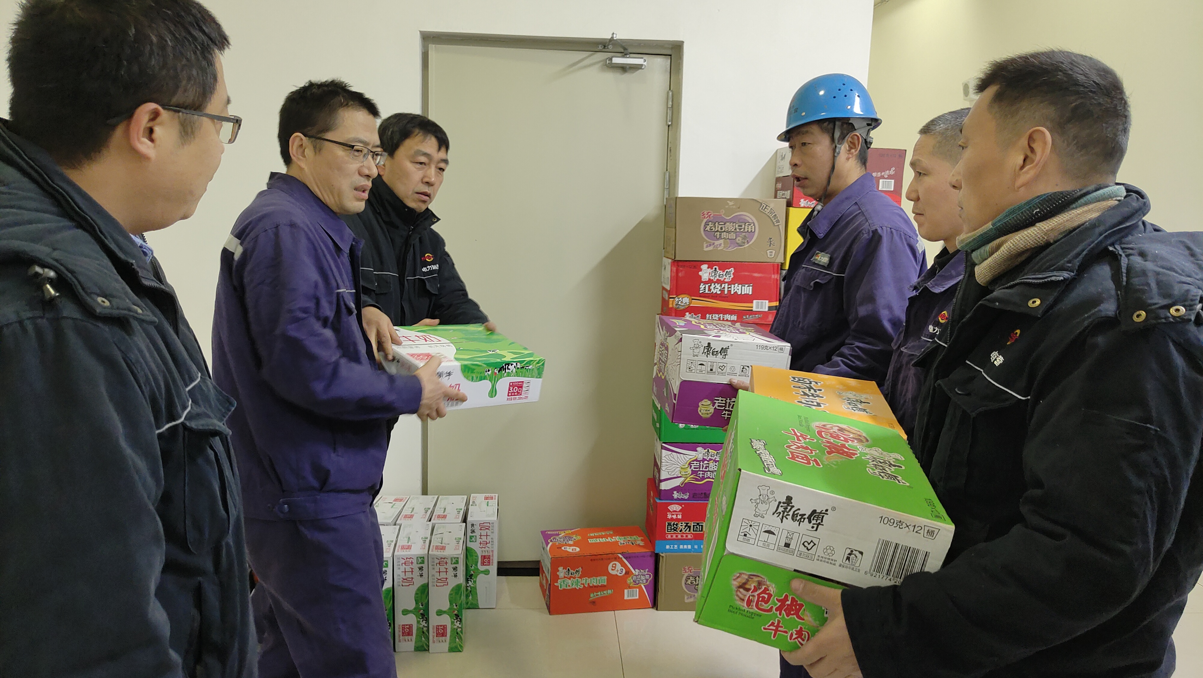 清水川項(xiàng)目部黨支部及時(shí)采購(gòu)生活物資,慰問戰(zhàn)斗在保電保熱第一線的黨員以及職工。
