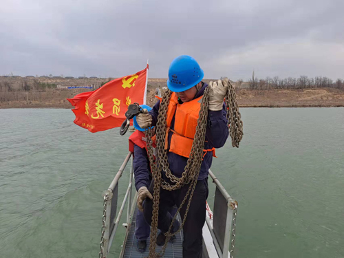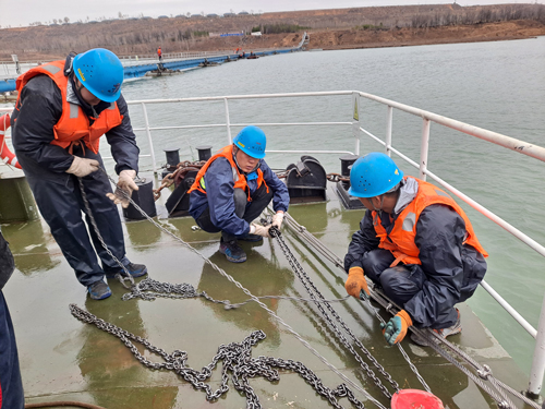 正值#2機組檢修時期,面對人員緊張、任務(wù)繁重等困難,項目部合理調(diào)配人員,現(xiàn)場搭建臨時帳篷,全程監(jiān)控浮橋變化情況,焊接臨時浮箱及龍門架,起吊3號浮箱及相關(guān)取水管線及廊橋,搶修工作安全有序開展。