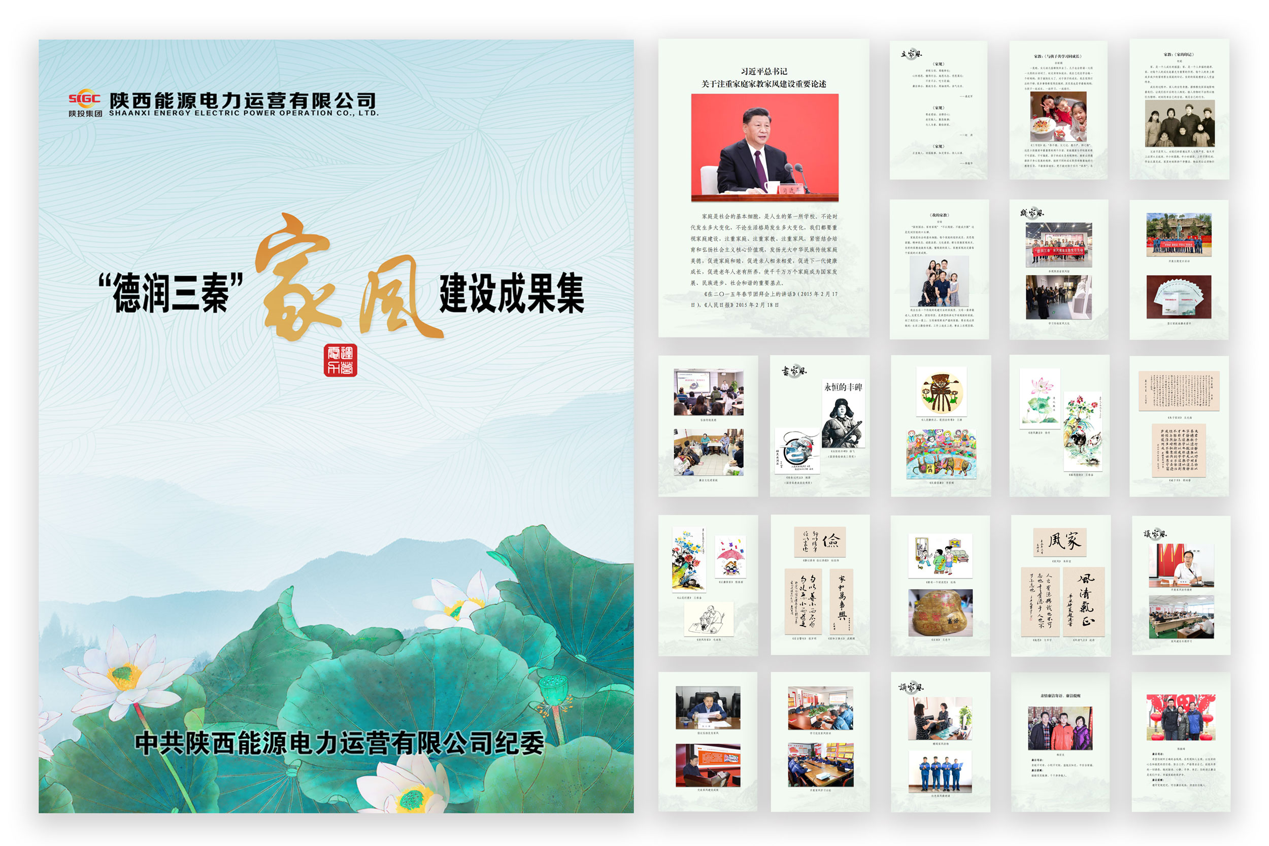 《“德潤(rùn)三秦”家風(fēng)建設(shè)成果集》以習(xí)近平總書(shū)記關(guān)于注重家庭家教家風(fēng)建設(shè)重要論述開(kāi)篇,圍繞立家風(fēng)、踐家風(fēng)、書(shū)家風(fēng)、議家風(fēng)、誦家風(fēng)、揚(yáng)家風(fēng)六個(gè)篇目,全面收錄了公司家風(fēng)建設(shè)活動(dòng)中征集到的55件優(yōu)秀作品,有立意鮮明的家規(guī)家訓(xùn)、有娓娓道來(lái)的家教家書(shū)、有主題突出的活動(dòng)剪影、有引人深思的家風(fēng)漫畫(huà)、有質(zhì)樸厚重的書(shū)法繪畫(huà)、有語(yǔ)重心長(zhǎng)的廉潔囑咐,一個(gè)個(gè)故事飽含深情,一張張圖片發(fā)人深省,充分展現(xiàn)了公司的家風(fēng)文化、廉潔文化和企業(yè)文化。