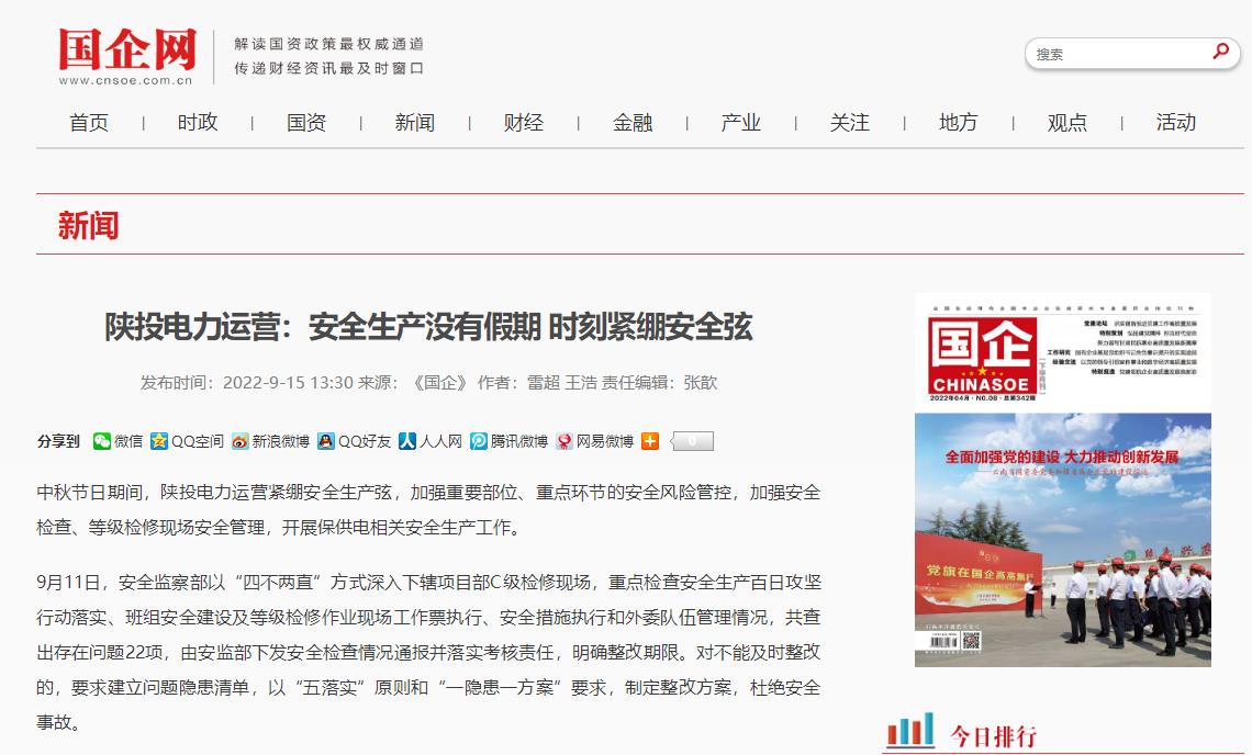 中秋節(jié)日期間,電力運(yùn)營(yíng)緊繃安全生產(chǎn)弦,加強(qiáng)重要部位、重點(diǎn)環(huán)節(jié)的安全風(fēng)險(xiǎn)管控,加強(qiáng)安全檢查、等級(jí)檢修現(xiàn)場(chǎng)安全管理,開(kāi)展保供電相關(guān)安全生產(chǎn)工作。