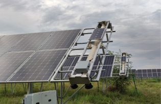 寶雞鳳翔二期光伏電站位于鳳翔區(qū)長青鎮(zhèn),用地面積達(dá)781畝,項(xiàng)目總?cè)萘?0MW,直流安裝容量62.8MWp,由16個(gè)光伏發(fā)電方陣單元組成。場站位置靠近灰廠,灰塵覆蓋情況嚴(yán)重,技術(shù)團(tuán)隊(duì)針對這一痛點(diǎn),在現(xiàn)有“智能運(yùn)維平臺”基礎(chǔ)上,研發(fā)“光伏組件灰塵覆蓋損耗在線分析系統(tǒng)及自動(dòng)清洗系統(tǒng)”。通過安裝灰塵檢測系統(tǒng)以及智能清掃機(jī)器人,解決電站由于灰塵覆蓋造成的發(fā)電損失等問題。清洗機(jī)器人具有獨(dú)立自供電、雙閉環(huán)運(yùn)動(dòng)控制、自適應(yīng)停機(jī)、過電流保護(hù)等優(yōu)勢功能,能夠?qū)崿F(xiàn)清洗過程完全智能化管理,無需人工干預(yù)。